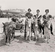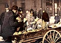 scenes from busy early American intersections, including the people, the horse